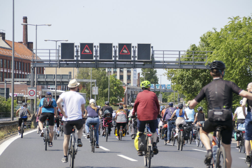 Alles war schön: das Wetter, die Laune der Menschenmassen und … das Radfahrende einmal im Jahr (für 4 Stunden) das Privileg der Autofahrenden haben: eine eigene Schnellstraße durch die Stadt.