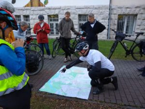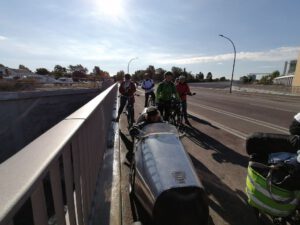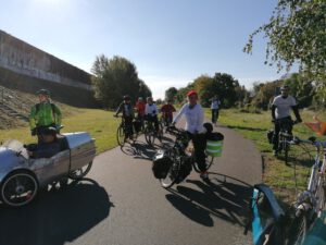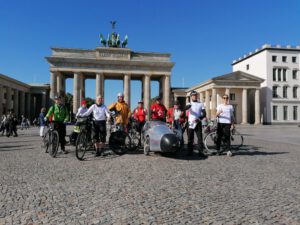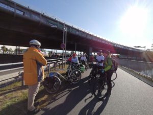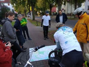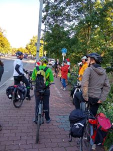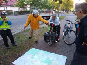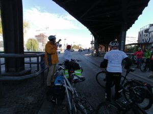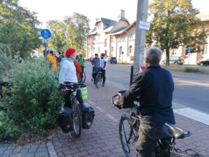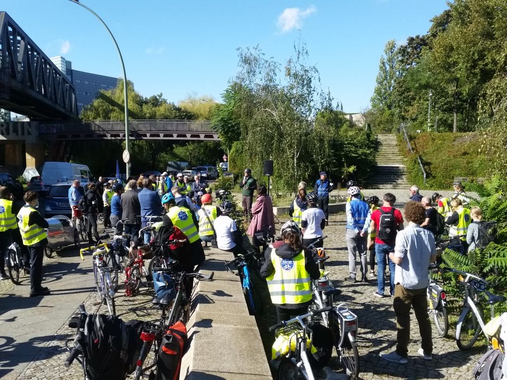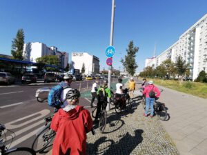 Volles Programm gab es am Montag, dem 28.9.2020: Zuerst führten wir angereiste und lokale Vertreter der Wissenschaft auf teils verschlungenen Pfaden von Eichwalde bis zum Bundestag, legten unsere Sicht auf die lokale Situation dar und beantworteten deren Fragen an die Praxis. Danach begleiteten wir die parlamentarische Radtour des Parlamentskreises Fahrrad des Bundestages zu den Pop-Up-Radspuren in Friedrichshain-Kreuzberg.
